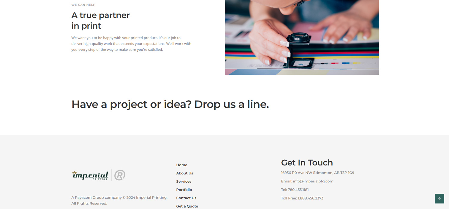 The portfolio will prominently display Imperial Printing's printing projects, with high-quality images and descriptions that showcase their expertise in commercial printing. The website will be easy to navigate and manage, with a focus on providing an engaging user experience for clients.
